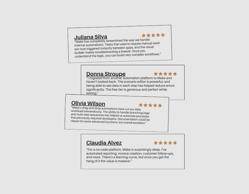 Make is a visual, no-code automation platform designed to help individuals and businesses build complex workflows without technical knowledge. It allows users to connect hundreds of apps and services, define logic, set conditions, and automate data movement between tools using an intuitive drag-and-drop interface. Unlike basic automation tools, Make supports advanced scenarios such as branching workflows, error handling, scheduling, and real-time triggers, making it suitable for everything from simple task automation to full operational processes. It’s commonly used to automate marketing, sales, customer support, reporting, and internal operations, helping teams reduce manual work and create scalable systems.
